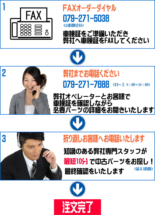 先に車検証をFAXいただき、その後電話を入れて頂ける方法が最も早くて便利です。